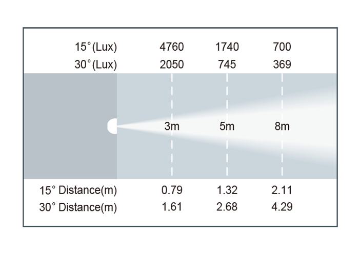 - 光斑角度:15 ~ 30° (25 ~ 50°可選)