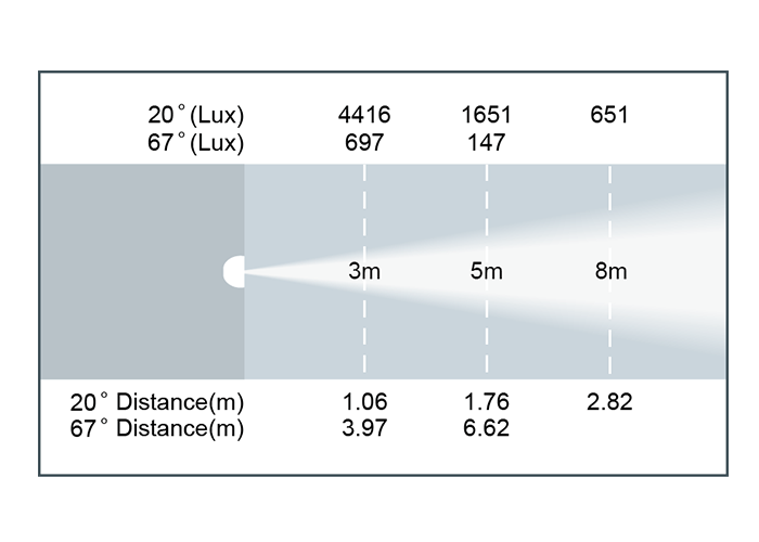 - 光斑角度:20 ~ 67°