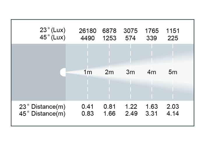 - 光斑角度:23 ~ 45°