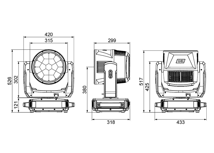 - 光源:19 × 60W RGBW LED