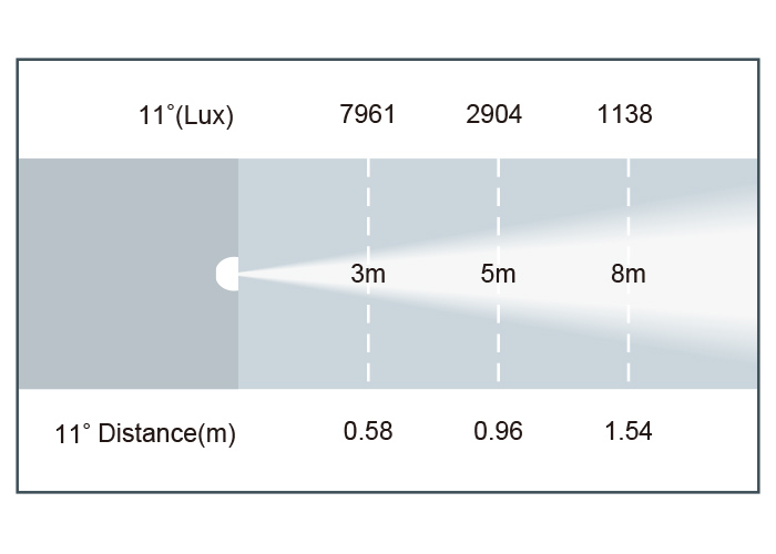 - 光束角度:11° (可選 25° / 40° / 60° / 100° 光學(xué)片)