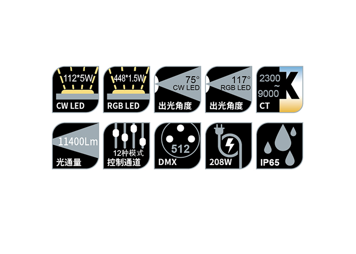 - 光斑角度:117° (RGB LED) / 75° (CW LED)