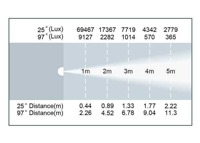 - 光斑角度:97°(可更換光學(xué)鏡片25°)