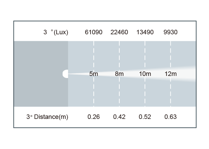 - 光照度:61090 Lux@5m,9003 Lux@12m